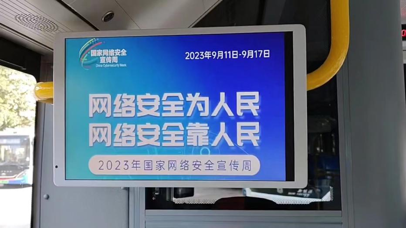 多种渠道铺开宣传矩阵。2023年国家网络安全宣传周期间,万象城、银座商场等商业综合体、栈桥等热门景区、社区以及学校等人流密集场所100余块LED 宣传大屏滚动播放着网络安全宣传标语及宣传视频。此外,市南区还积极协调城运控股集团,在全市400余辆公交车的车载电视上滚动刊播网络安全教育相关内容,有利于全市营造出浓厚的活动氛围,潜移默化之中提升人们对本次活动的关注度。