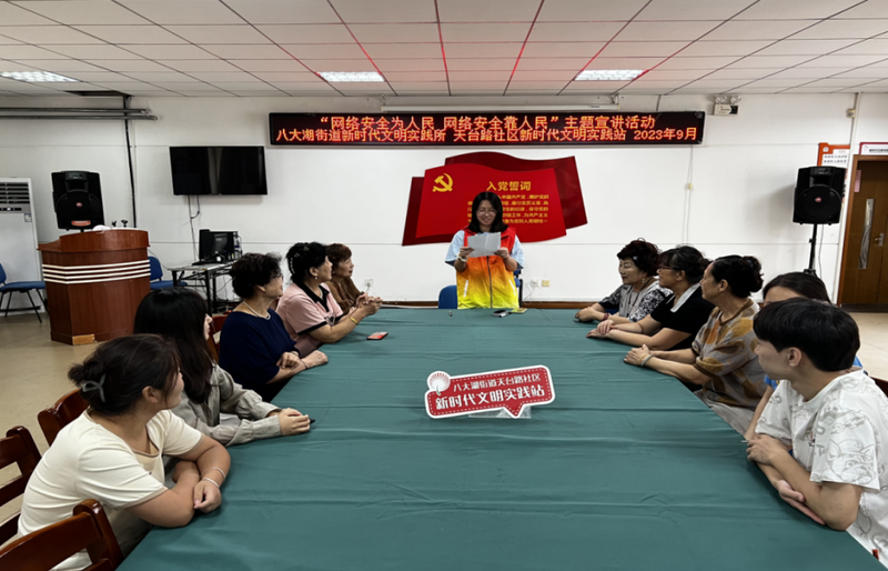 再比如,各社区发挥深入基层优势,以更接地气、更适合口耳相传的方式进行宣传。在市南区太湖路、永嘉路社区新时代文明实践站,文明实践志愿者志愿者以近期热映电影《孤注一掷》循循善诱,八大湖街道新时代文明实践所还巧借街道微信群即时通达的特点,线上转发网络安全相关知识。