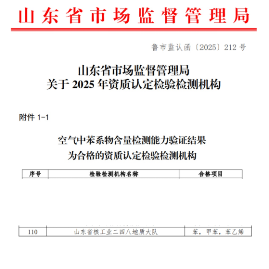 近日,山东省市场监督管理局组织开展“空气中苯系物含量”检测项目能力验证工作,并正式通报首次验证结果。