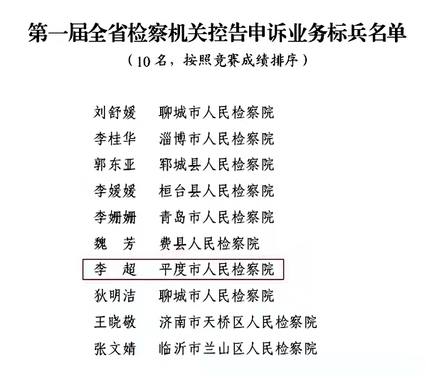 日前,山东省人民检察院举办了第一届全省检察机关控告申诉业务竞赛,青岛平度市人民检察院90后检察干警李超,获得“全省控申业务标兵”荣誉称号。