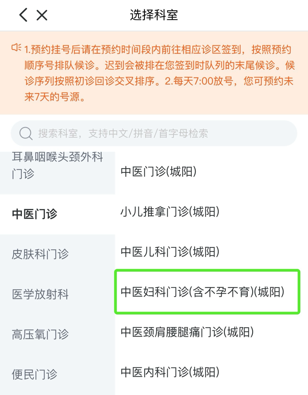 关注“北京大学人民医院青岛医院”或者“健康青岛”微信公众号,选择中医妇科门诊(含不孕不育)