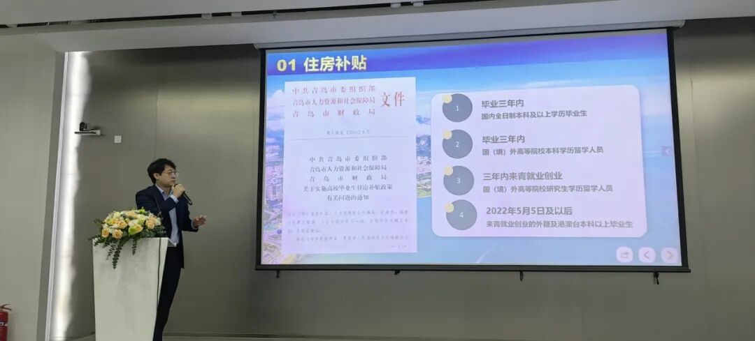 崂山区人社局工作人员进行了《崂山区人才补贴政策》解读,为参会人员详尽阐释了各项补贴的申请条件、补贴标准及办理流程,使她们对政策支持有了更为清晰的认识,确保她们能够全面享受到政策所带来的实惠。
