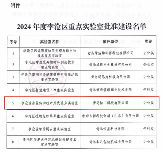 近日,青岛核工机械有限公司成功获批2024年度李沧区“齿轮传动技术开发重点实验室”,并再度入选2025年度“专精特新”中小企业名录,标志着企业在高端装备制造领域的综合实力再上新台阶。